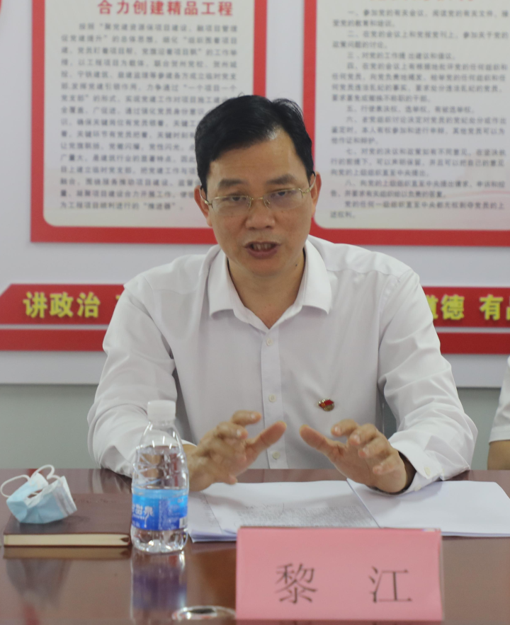 發(fā)布時間:2022-05-13 作者:圖/覃國波 文/李欣 編輯/胡博文 來源:本站原創(chuàng) 審核:鄧永劍為增進溝通交流,搭建合作關(guān)系,5月12日下午,賀州市委黨校、賀州城投集團、益建監(jiān)理公司、廣西寧鐵建筑公司聚焦精神聯(lián)學(xué)、黨建聯(lián)建、業(yè)務(wù)聯(lián)動,在賀州市委黨校新校園建設(shè)項目現(xiàn)場開展聯(lián)盟聯(lián)學(xué)聯(lián)建活動,共同探索黨建工作與生產(chǎn)經(jīng)營深度融合的全新模式。賀州市委黨校常務(wù)副校長黎江,賀州城投集團黨委書記、董事長黃俊,廣西寧鐵建筑公司黨委書記、董事長周耿出席本次活動。
