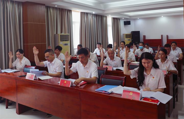 會(huì)議在激昂的國(guó)歌中拉開序幕,全體黨員莊重肅立,齊唱《中華人民共和國(guó)國(guó)歌》。